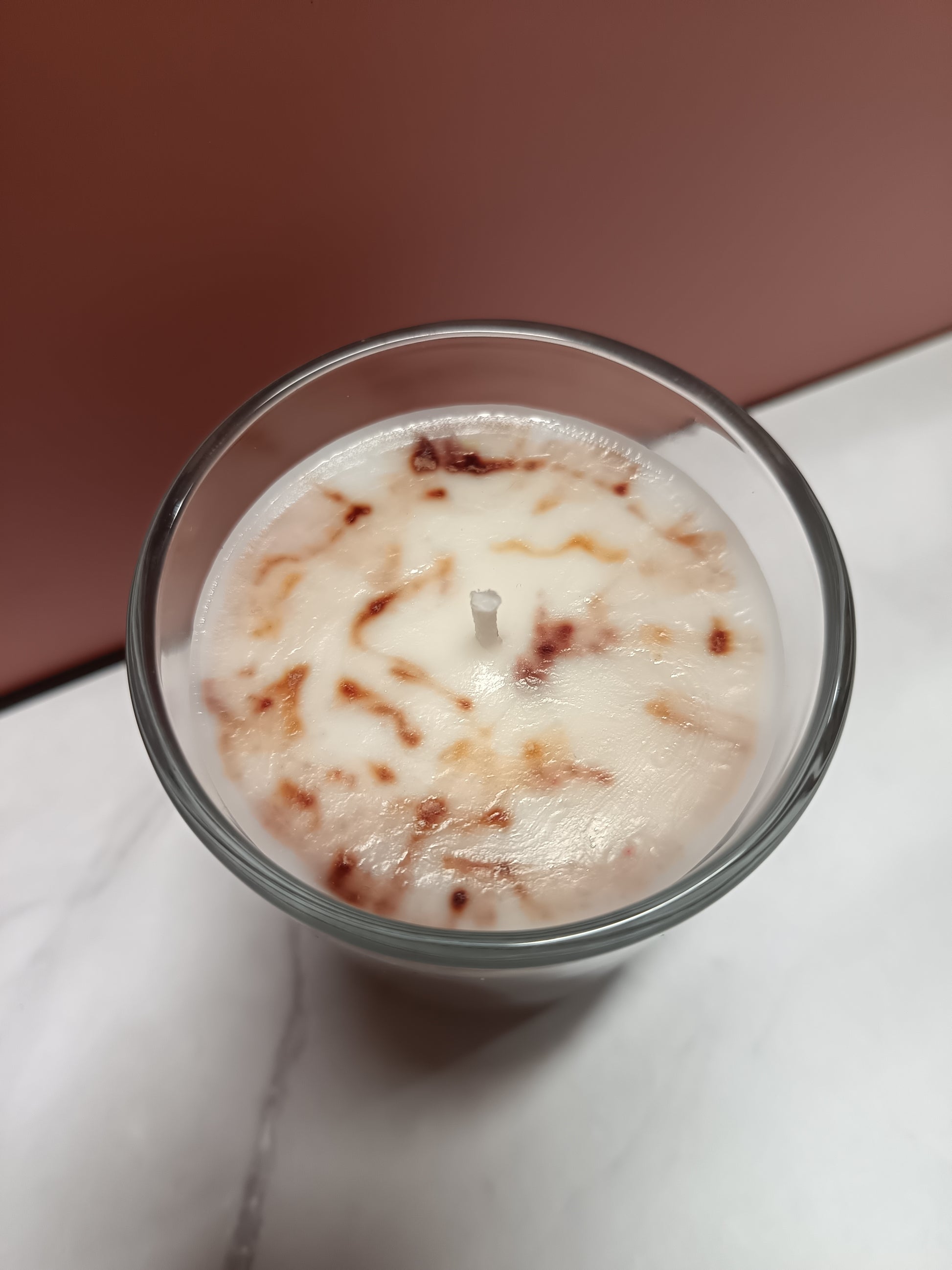 Plongez dans une ambiance chaleureuse et festive avec notre bougie Moccacino de Noël, pensée pour les amoureux des senteurs gourmandes et cocooning. Présentée dans un verre au design minimaliste, elle révèle une cire bicolore évoquant un délicieux moccacino recouvert de crème parfumée, avec de légères nuances brunes sur le dessus pour un effet “gourmand” irrésistible.